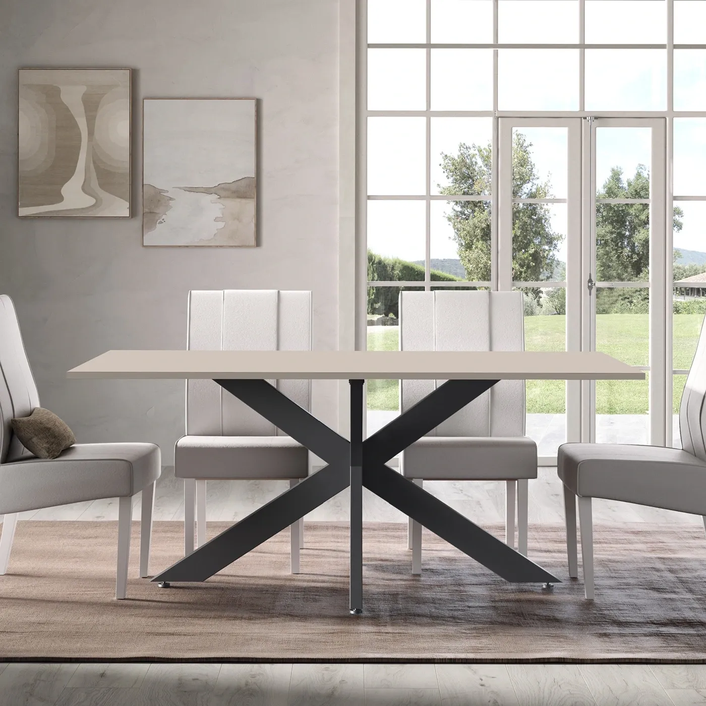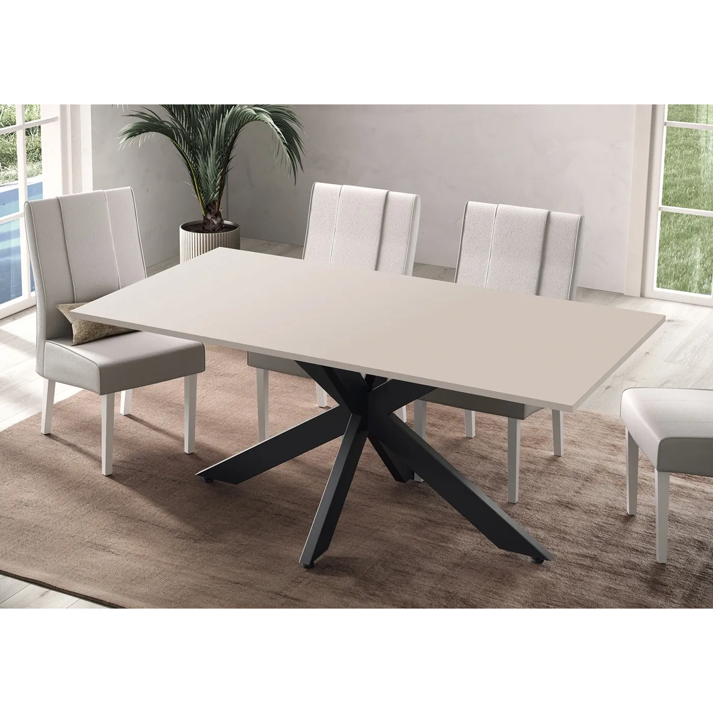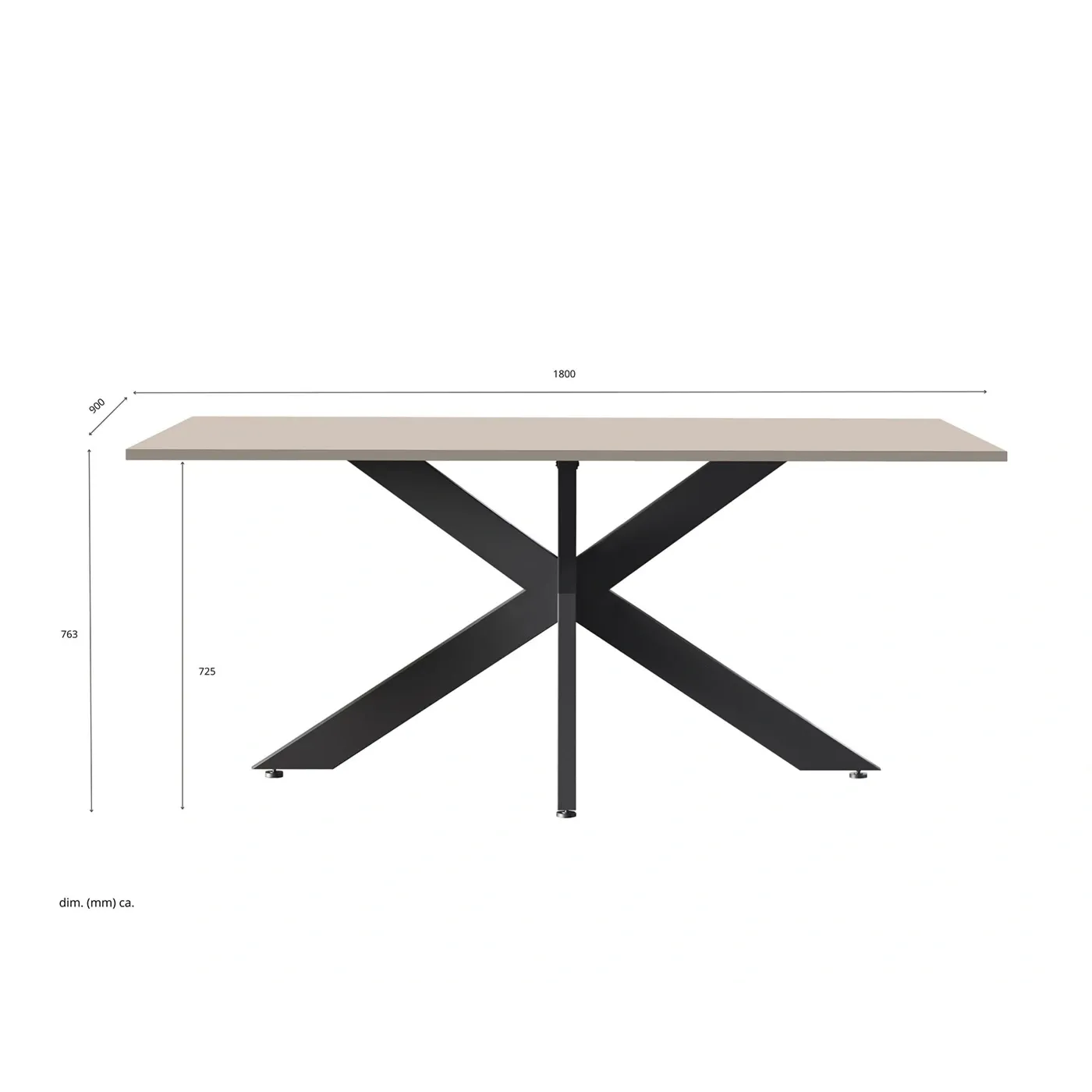 Tavolo moderno con gambe ad incrocio, Cashmere, L.180 H.77 P.90