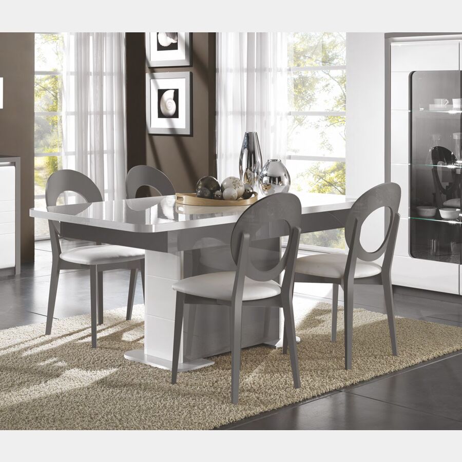Tavolo moderno allungabile L.180, bianco lucido e grigio basalto