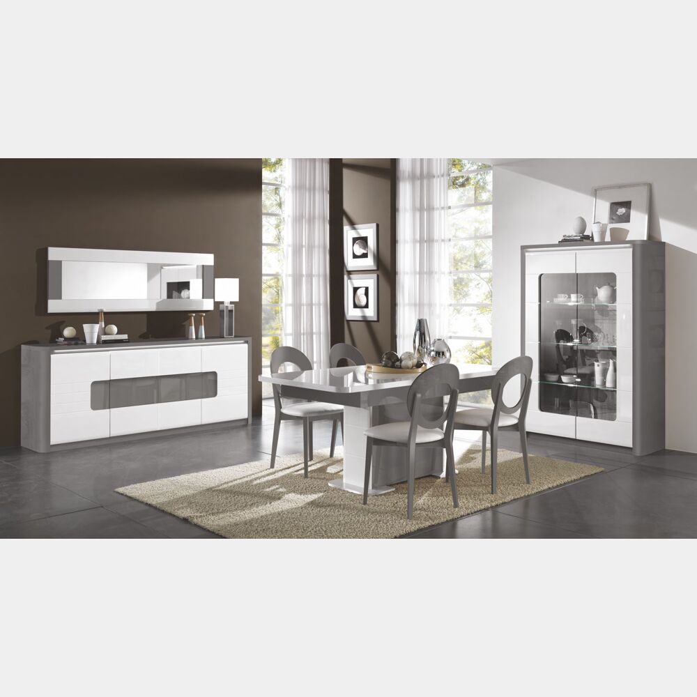 La Collezione Zafferano bianco lucido e grigio basalto è composta da madia 4 ante, madia 3 ante, vetrina 2 ante, specchiera, porta TV, tavolo allungabile, tavolino... tutti questi elementi per creare la tua sala completa e arredare con design la tua zona living.
