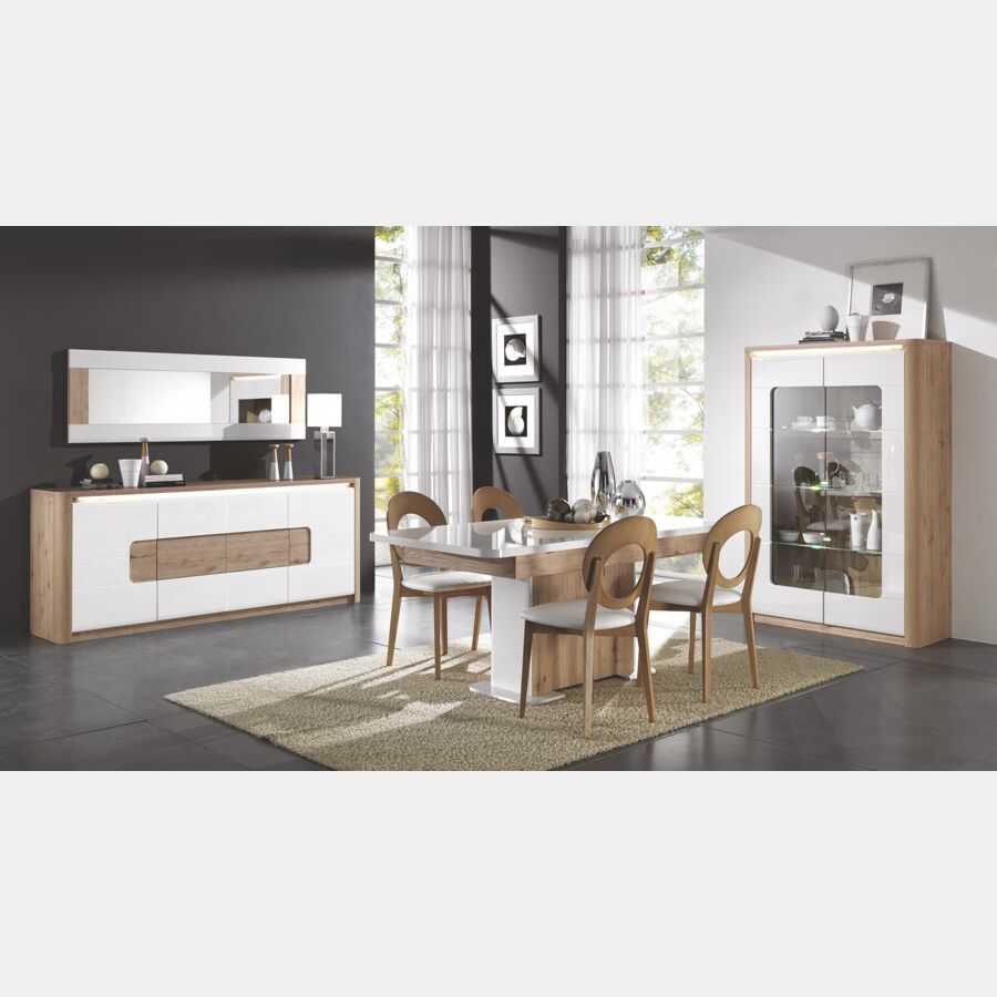 La Collezione Zafferano è composta da madia 4 ante, madia 3 ante, vetrina 2 ante, specchiera, porta TV, tavolo allungabile, tavolino... tutti questi elementi per creare la tua sala completa e arredare con design la tua zona living.