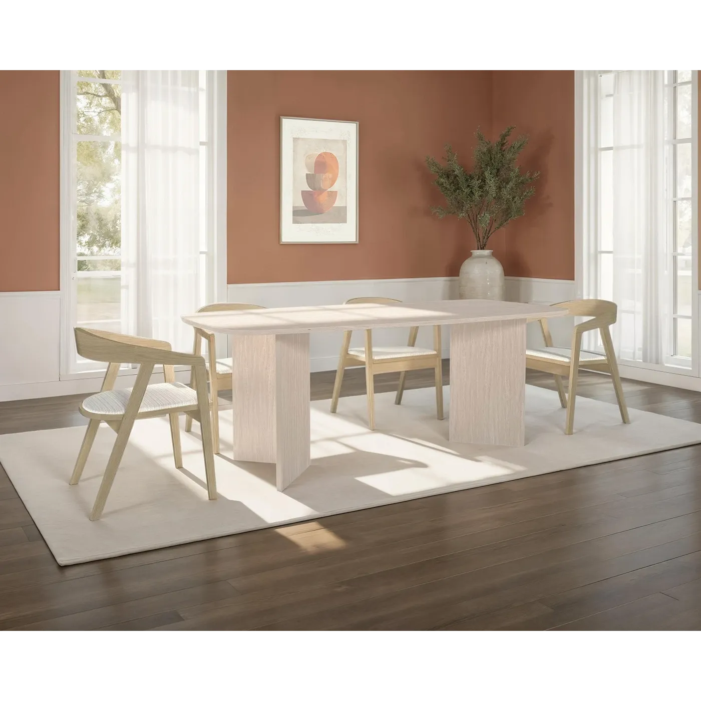 Tavolo ovale con gambe a pannello incrociate a due a due moderno e scultoreo, con un design distintivo e architettonico. Disponibile sia in finitura Travertino che in finitura Cashmere.