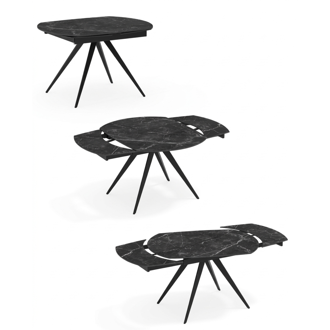 Tavolo rotante allungabile con base in metallo finitura Marmo Nero opaco